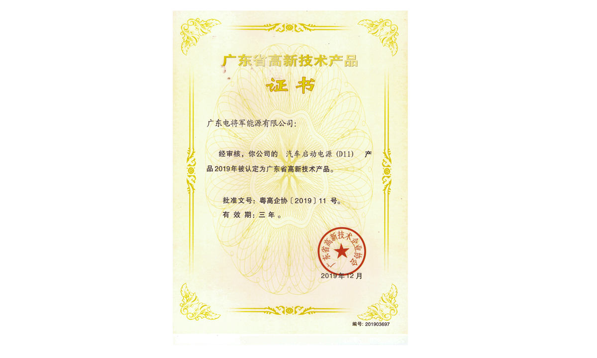 高新技術產品證書